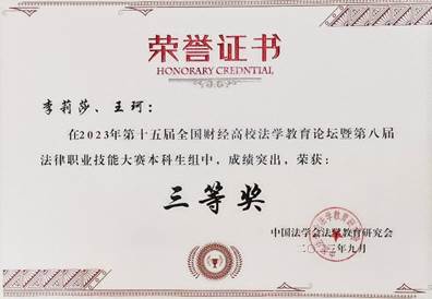公司严静老师指导,李莉莎、王珂同学共同提交的“非物质文化遗产群体性智力成果权保障机制研究一一以天津市为例” 参赛作品,荣获本科组三等奖;沃耘老师和宁伟老师共同指导,22级研究生乔鹏飞同学提交的“个人信息民事侵权调查报告”参赛作品,荣获研究生组三等奖。