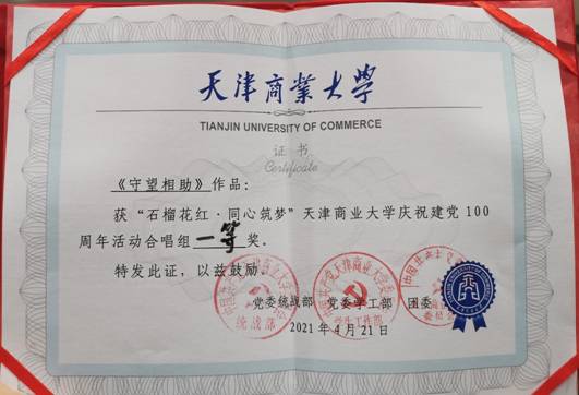 捷报/beat365亚洲体育学子在校建党100周年文艺比赛中获得合唱组一等奖