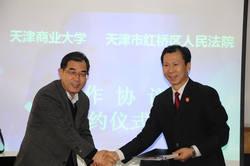 为培养优秀法律人才和提升审判工作水平,实现优势互补、资源共享,共同构建审判工作联动机制、法官培训机制和高等教育实践教学机制。近日,公司与红桥区人民法院签订合作协议。副董事长齐恩平、产学研办公室主任李勤国,红桥区人民法院经理刘莉、副经理郭书宏、耿宝东、研究室主任南宝龙等一行10人以及beat365亚洲体育全体班子成员出席签约仪式。